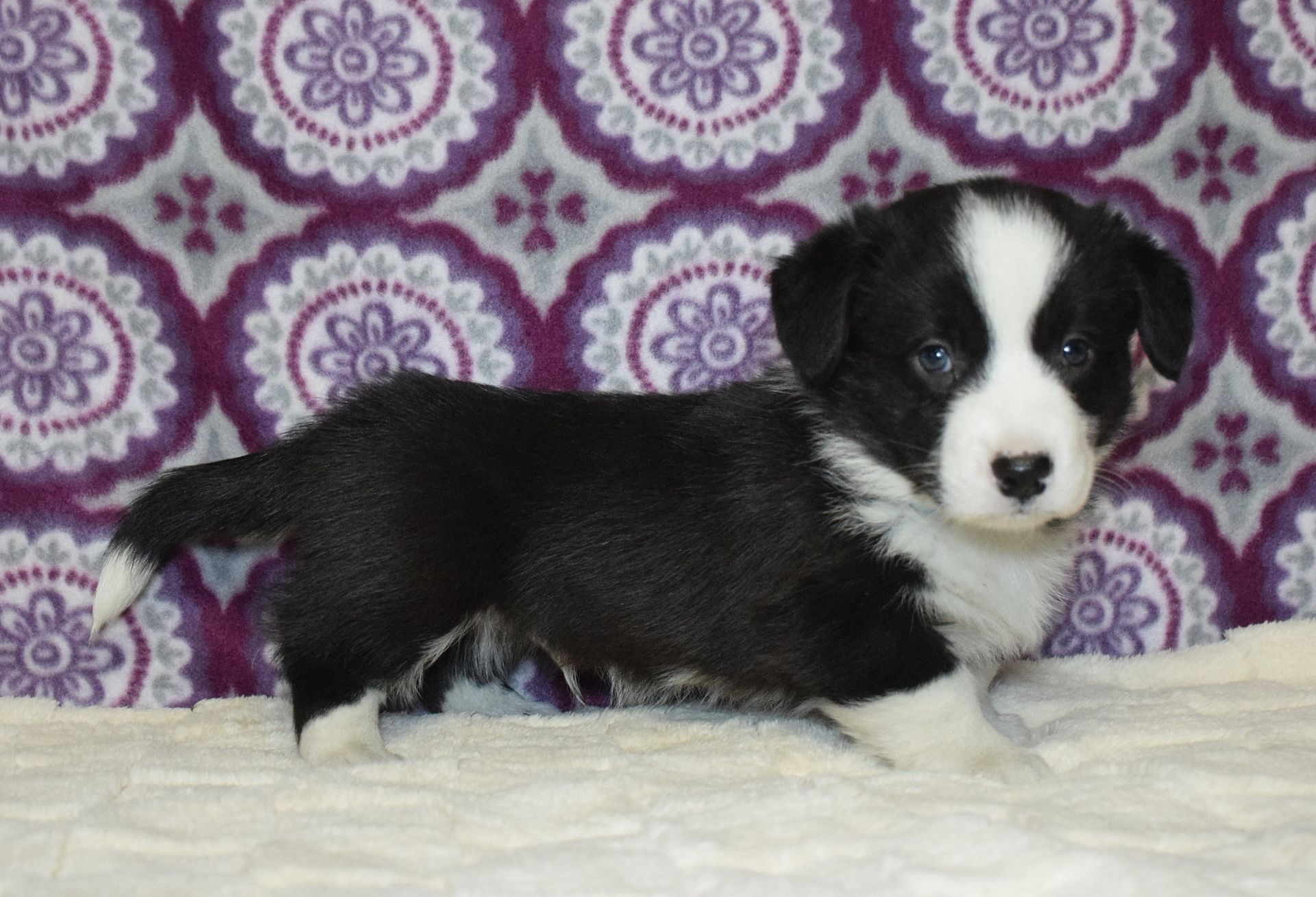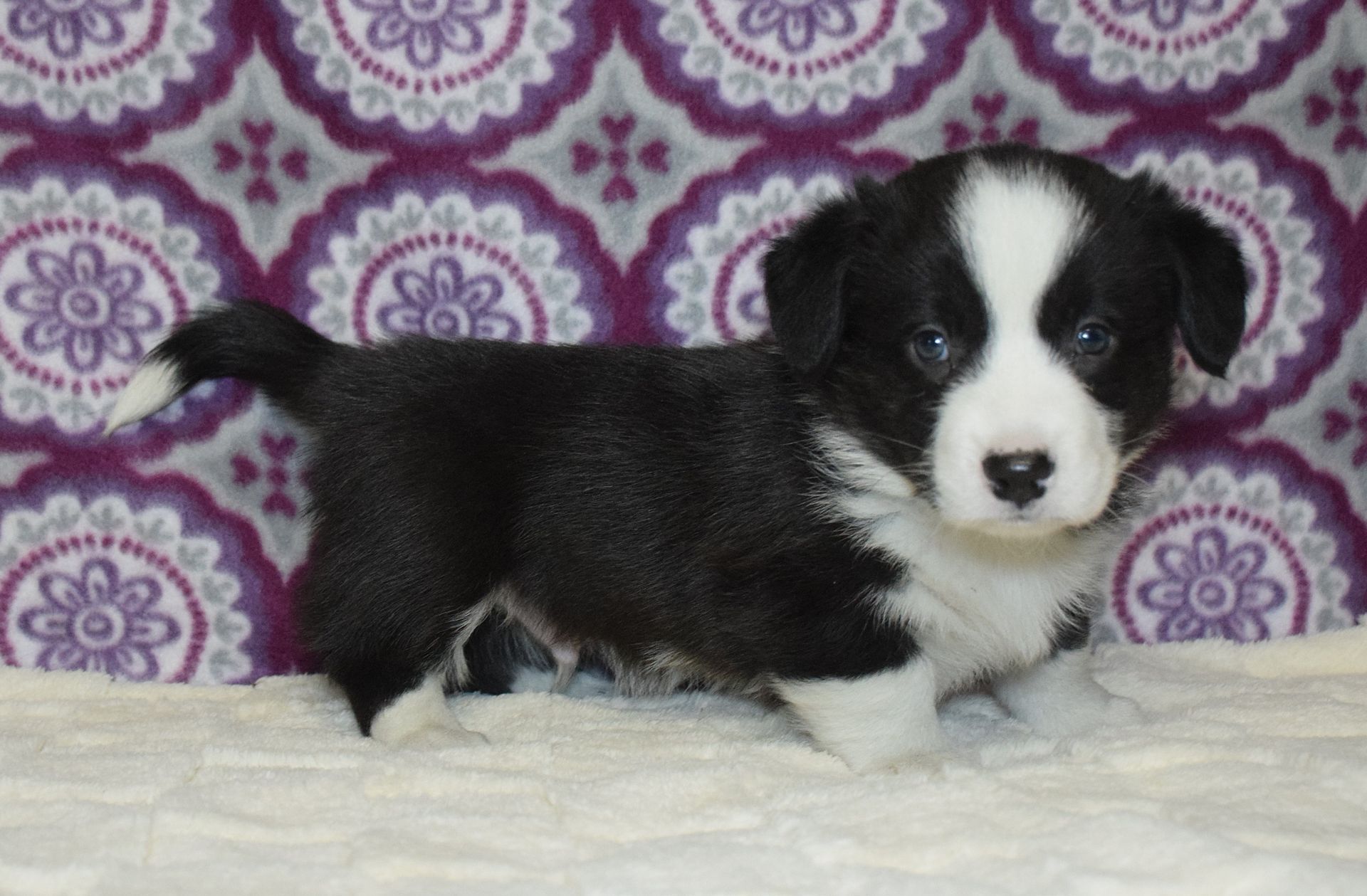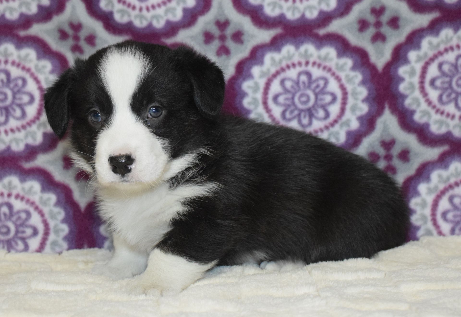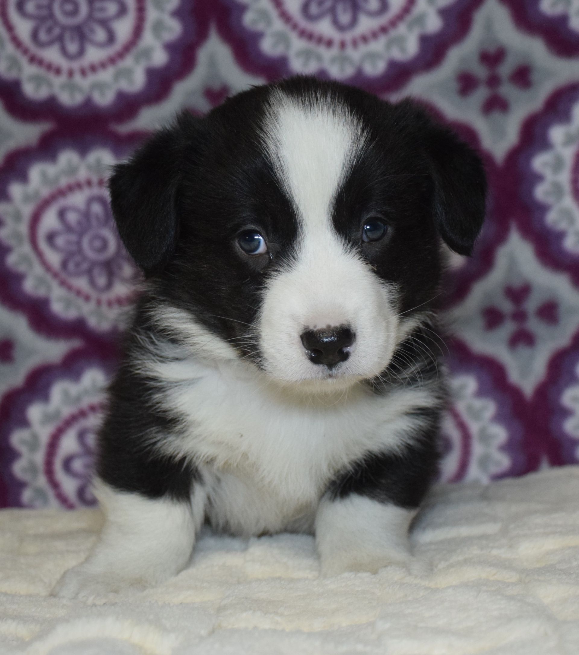 This adorable black and white boy is Castiel and he is looking to be your Valentine. He is very silly and playful, spending his days playing with his siblings and our staff. This puppy is up to date on all vaccinations and wormings. This puppy is being sold on a spay/neuter contract and comes with a 1 year health guarantee. You will also receive FREE 30 day health insurance AFTER registering the puppy with AKC. Deposit to hold is $200.00.